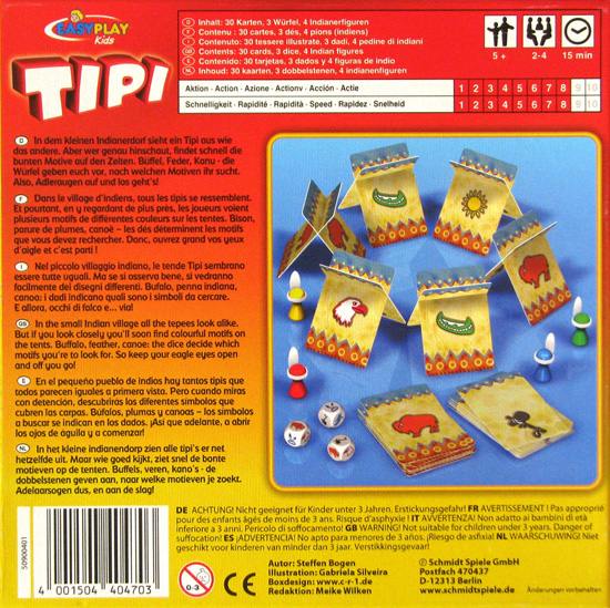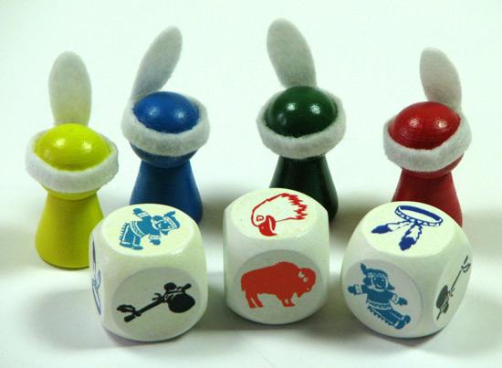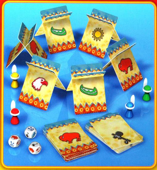Z kart należy zbudować małe tipi. Na zewnątrz oraz wewnątrz namiotów są przedstawione symbole. Poszukiwane symbole będą wskazywane przez kości.