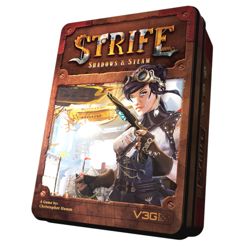 Strife: Shadows & Steam, a two-player, tarot-sized, strategy card game that plays in around an hour, is a game of perfect information in which you always know your opponent's options. Aside from mastering the unique combo-creating gameplay of your own champions, figuring out how to outmaneuver your opponent is where the true challenge lies.