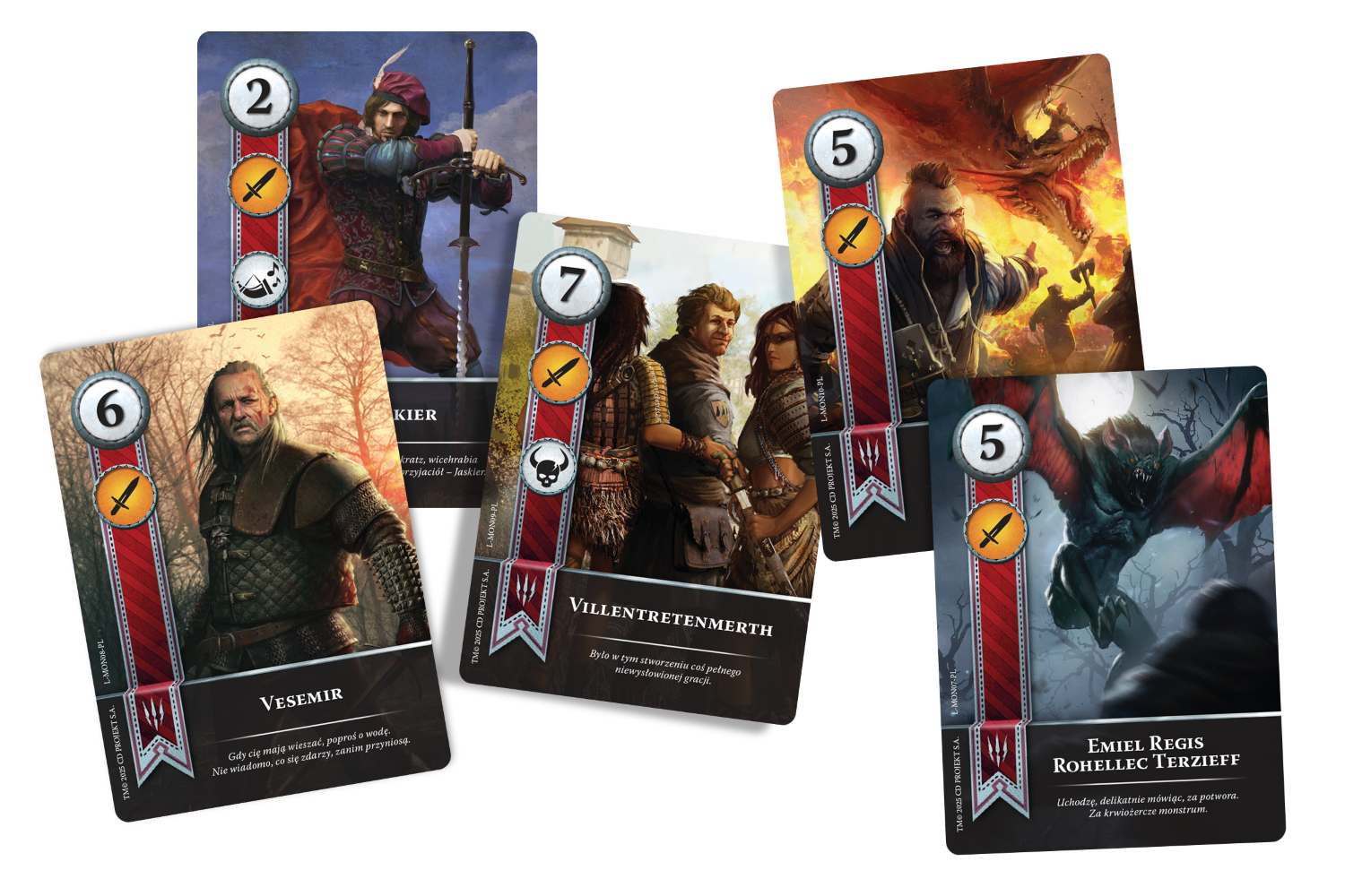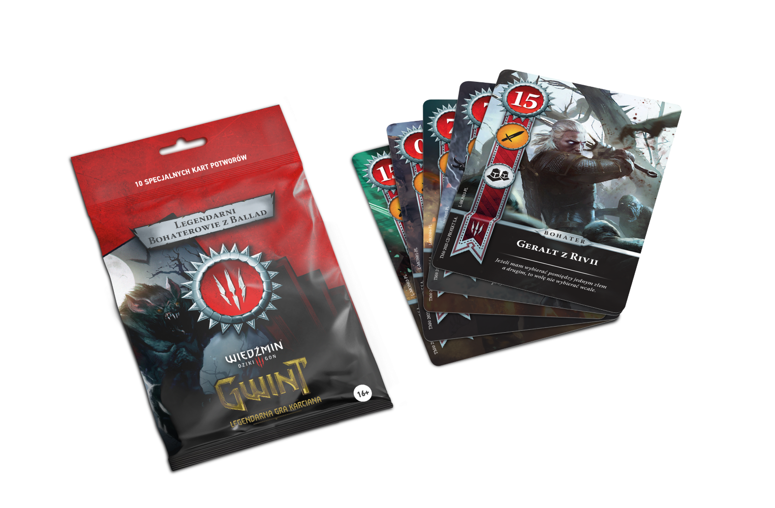Cirilla, Geralt z Rivii, Triss Merigold, Yennefer z Vengerbergu i inni bohaterowie opowieści Jaskra zaprezentowani w całej swojej chwale! Gwint: Legendarni bohaterowie z ballad - Potwory zawiera zestaw 10 alternatywnych wersji kart, które możesz dołączyć do swojej talii.