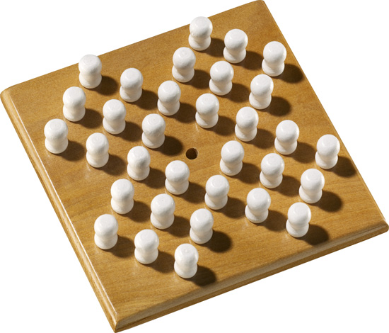 Włóż pionki do dziurek umieszczonych na planszy. Tylko środkowa dziurka pozostaje pusta. Jeżeli tuż za pionkiem jest wolne miejsce, wtedy inny pionek może go przeskoczyć. Po takim ruchu oba mogą zostać usunięte z planszy. Nie wolno przeskakiwać pionkami po przekątnej. Celem gry jest usunięcie z planszy wszystkich pionków (może pozostać tylko jeden).