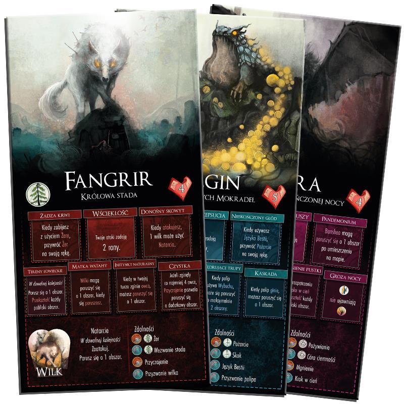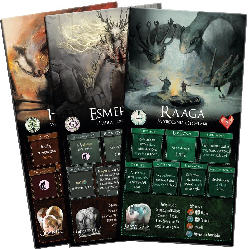 Bestia porusza się z użyciem zakrytych kart ruchu. Łowcy muszą się postarać, aby ją wytropić!