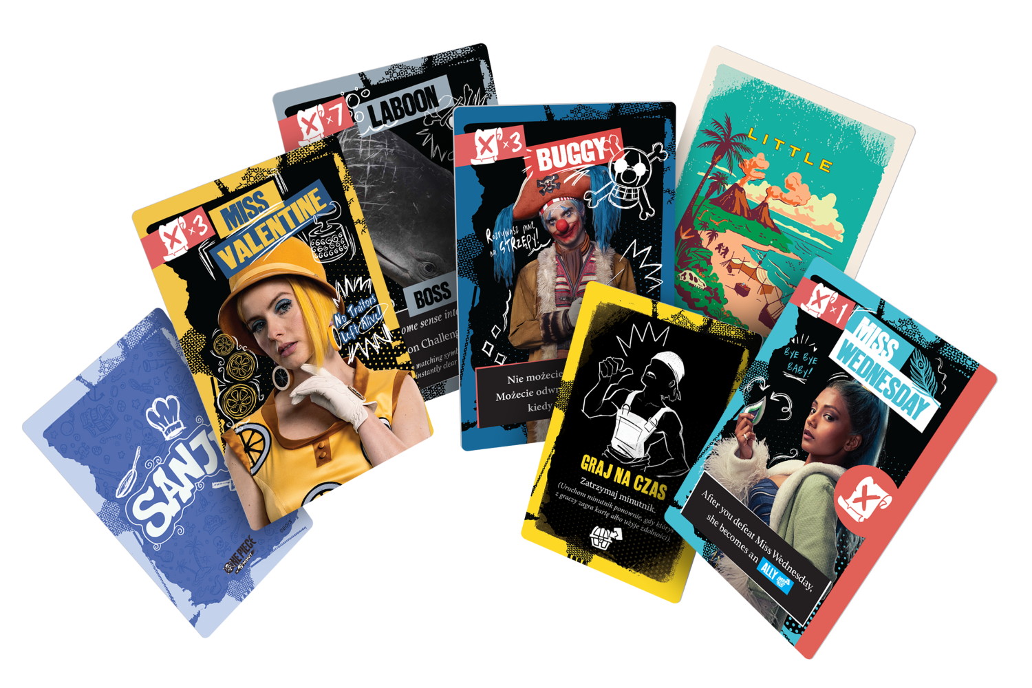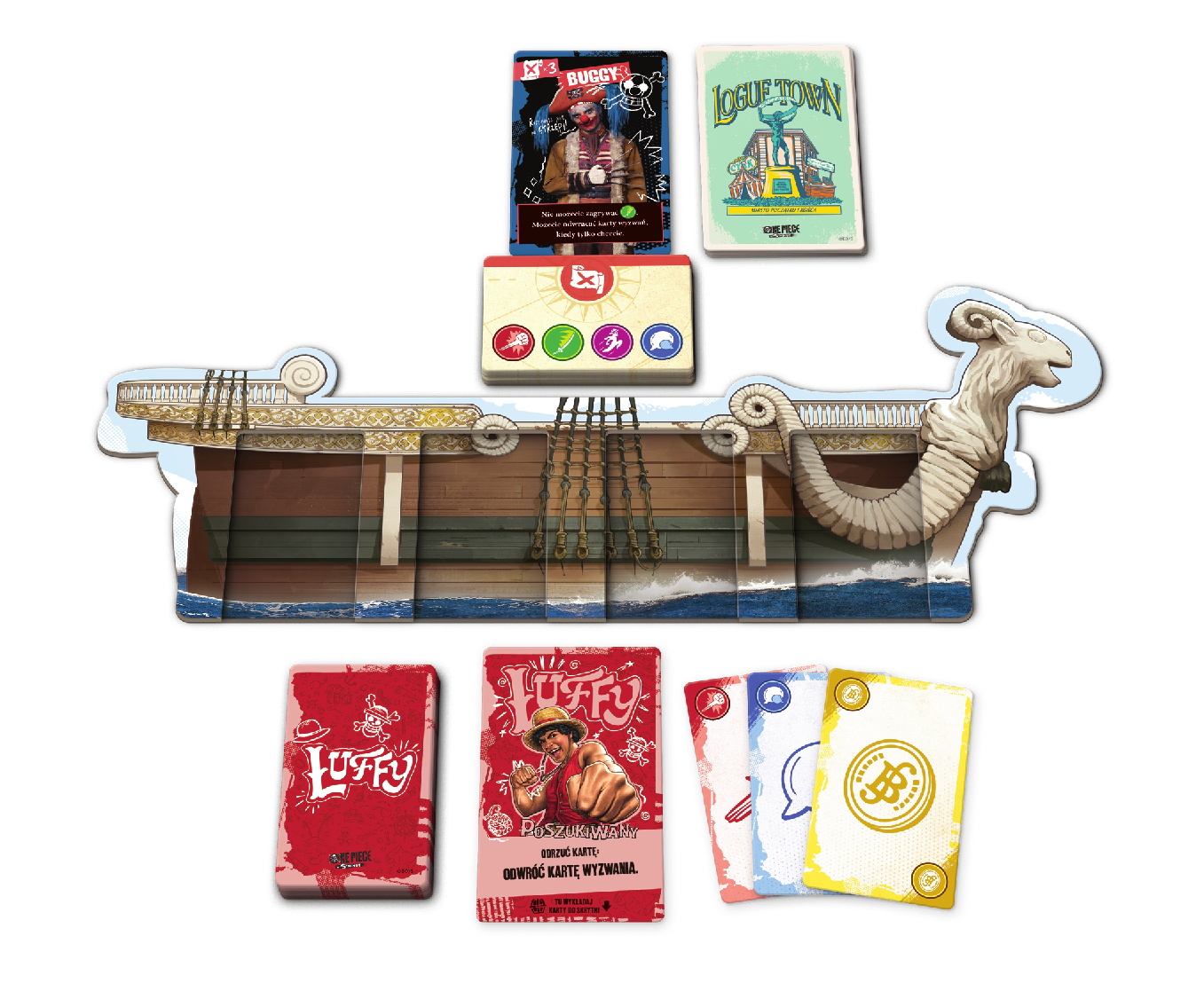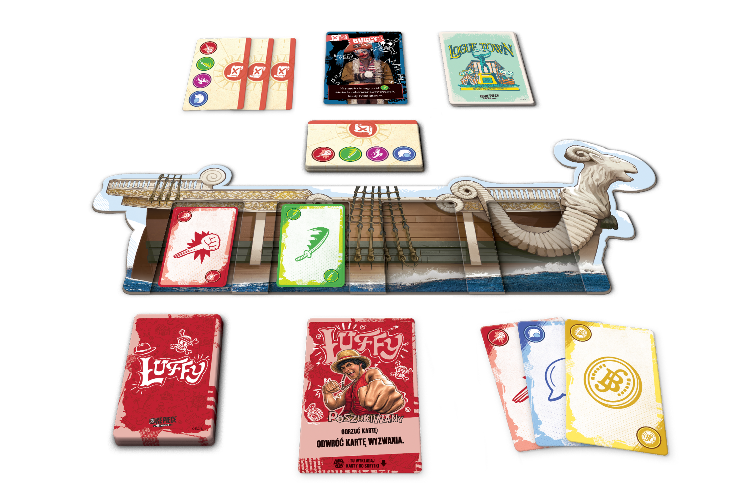 Wskakuj na pokład Going Merry i wspólnie z przyjaciółmi ruszaj na podbój okolicznych wysp! Każda z nich to zupełnie nowe wzywanie, a na swojej drodze spotkacie zarówno sojuszników do zwerbowania, jak i wrogów do pokonania. Na szczęście każdy członek załogi Słomkowego Kapelusza ma swoją unikatową zdolność i talię, dzięki której pomoże załodze w osiągnięciu celu!