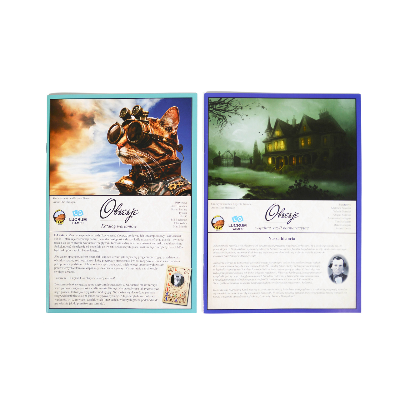 W tym pudełku znajdziesz główne rozszerzenie oraz kilka znacznie mniejszych modularnych rozszerzeń. Każde z nich może być samodzielnie bądź w połączeniu z innymi (tyczy się to także rozszerzeń wydanych osobno) wykorzystane do rozgrywki w Obsesje także przy zastosowaniu wariantów zasad – w tym wariantu kooperacyjnego.