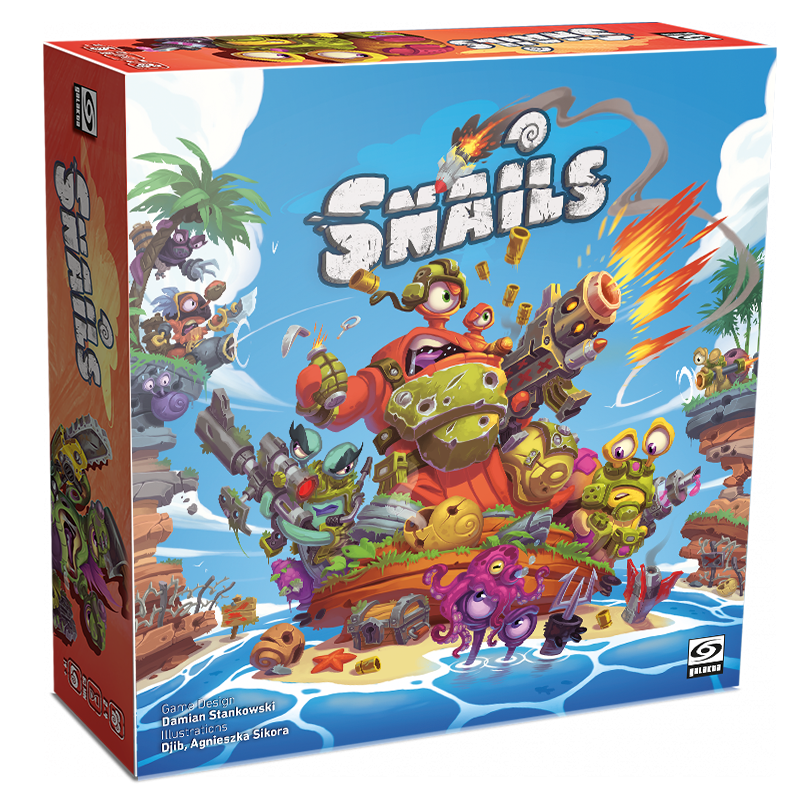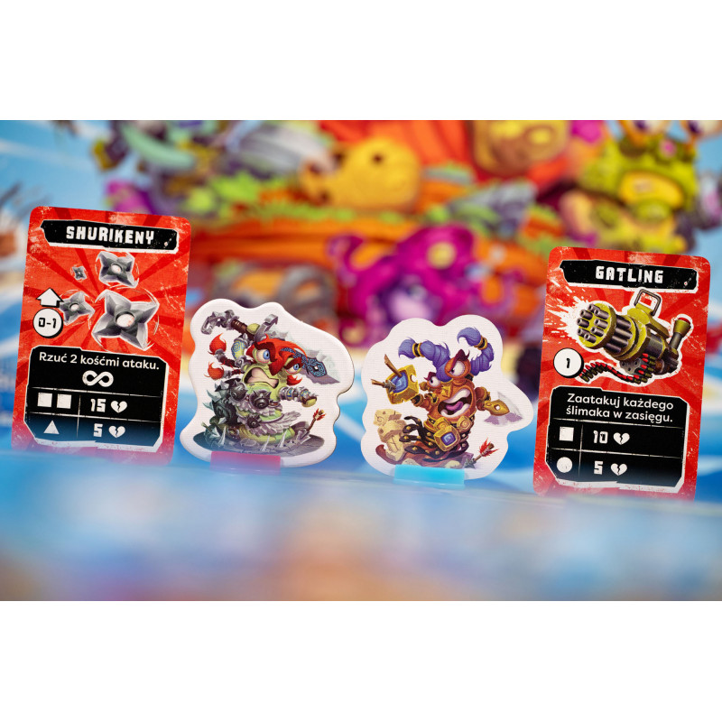 Gra planszowa o bitwie ślimaków za pomocą zabawnego arsenału dla od 2-4 graczy.