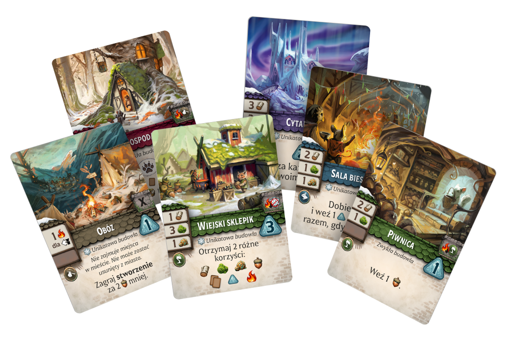 Oprócz elementów charakterystycznych wyłącznie dla Srebrnoszronów gra wprowadza też 4 rodzaje nowych, uniwersalnych stworzeń! Jeśli masz wśród współgraczy fanów pandek, pingwinów, sokołów albo zajęcy, nie ma żadnych przeszkód, żeby używać ich podczas rozgrywek w klasyczne Everdell.
